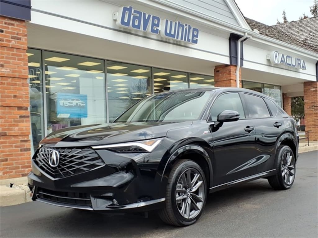 Dave White Acura is proud to offer this 2025 Acura ADX in Crystal Black Pearl with Ebony w/Leatherette Trimmed Seats. This ADX is very well equipped with 8 Speakers, Apple CarPlay/Android Auto, Automatic temperature control, Emergency communication system: AcuraLink, Front fog lights, Fully automatic headlights, Heated front seats, Lane departure: Lane Keeping Assist System (LKAS) active, Radio: AM/FM Acura Premium Audio System, Ventilated front seats, and Wheels: 19" x 8J Aluminum Alloy.