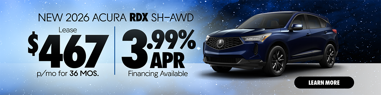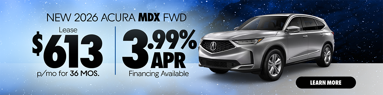 Prices include all costs to be paid by consumer except for licensing, registration, taxes, & $387 doc fees. Cannot be combined with other offers. Lease/Finance Requires Tier 1+ credit, not all guests will qualify. Does not include security deposit, taxes and fees, or security deposit. Lease offer through Acura Financial Services. Vehicle image for marketing purposes only. See Dealer For Complete Details. Offers expires 2/2/26.