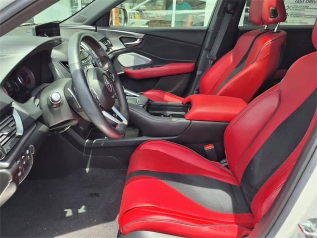 Dave White Acura is very proud to offer this 2023 Acura RDX in Platinum White Pearl with Red w/Perforated Milano Premium Leather-Trimmed Interior. This RDX is very well equipped with Apple CarPlay / Android Auto, Power LiftGate, Dual Pane Sky Roof, Heated & Cooled Leather Seats, and Heated Steering Wheel 16 Speakers, ABS brakes, Auto High-beam Headlights, Automatic temperature control, Fully automatic headlights, Heads-Up Display, Heated door mirrors, Heated rear seats, Knee airbag, Lane departure: Lane Keeping Assist System (LKAS) active, Memory seat, Outside temperature display, Overhead airbag, Rain sensing wipers, and Telescoping steering wheel.